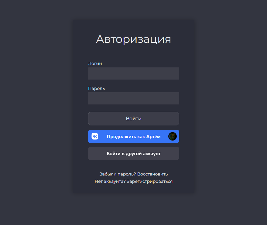 На данный момент авторизация и регистрация доступна.