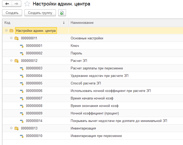 Настройки административного центра находятся в справочнике "Настройки админ. центра". Для доступа к настройкам откройте справочник через меню приложения.