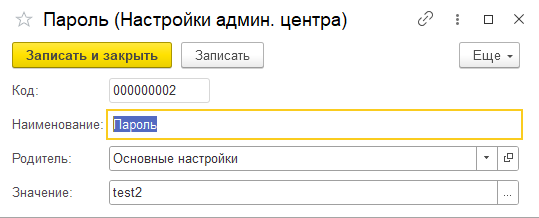 Настройка "Пароль" содержит пароль лицензии, используемый для аутентификации. Пароль устанавливается автоматически при привязке лицензии через команду "Привязка лицензии".