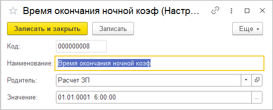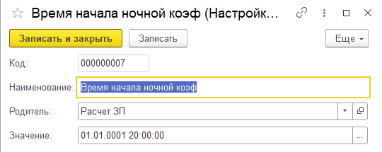 Настройка "Ночной коэффициент (процент)" определяет размер ночного коэффициента в процентах.
