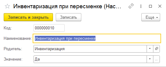 Шаг 1: Откройте настройку "Инвентаризация при пересменке".